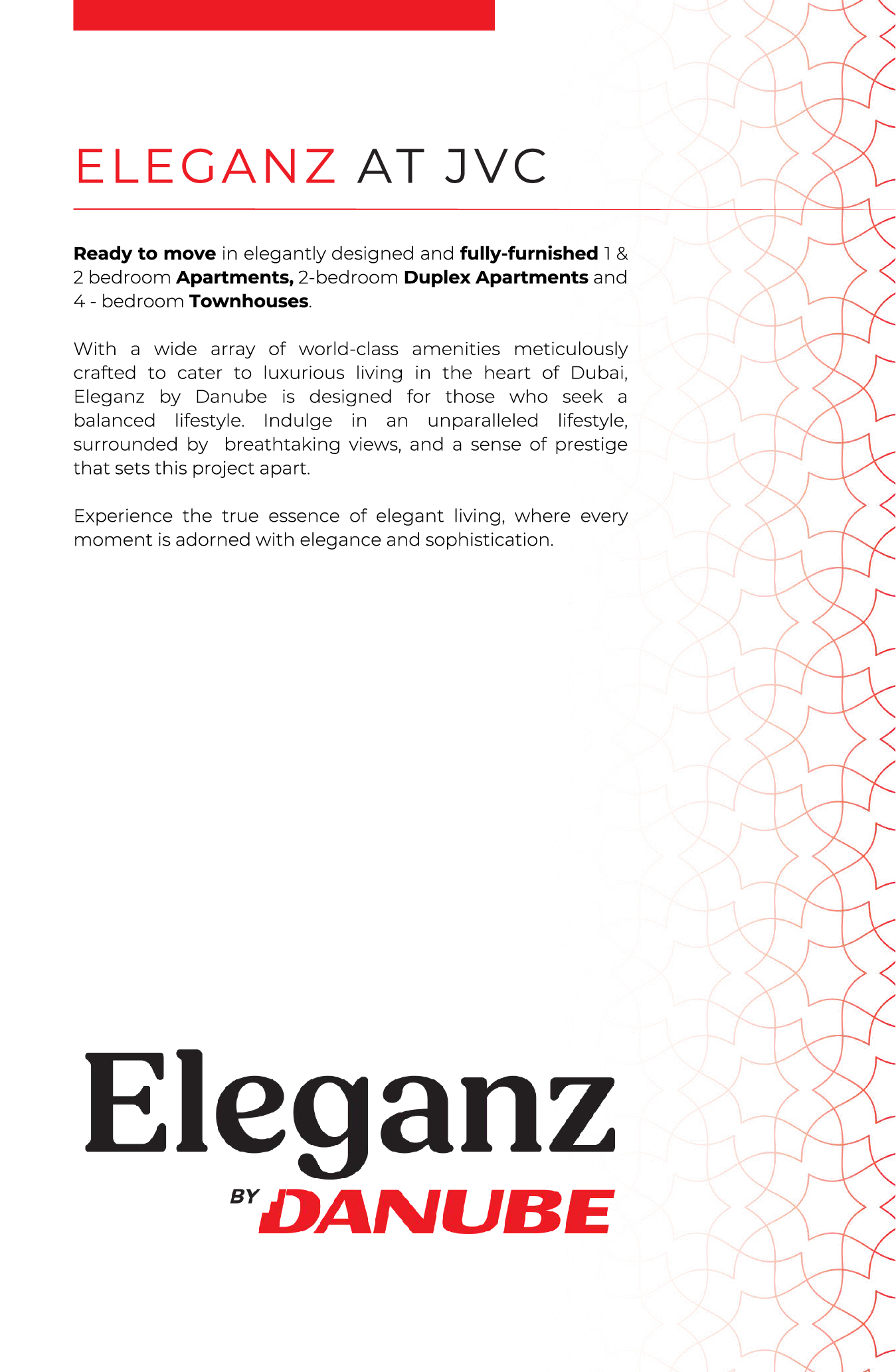 Introducing Eleganz by Danube, a stunning residential project offering luxury apartments and townhouses in the heart of Jumeirah Village Circle (JVC). This meticulously crafted development provides an exceptional blend of affordability, prime location, and high-end amenities, making it an ideal choice for discerning investors and homeowners alike.