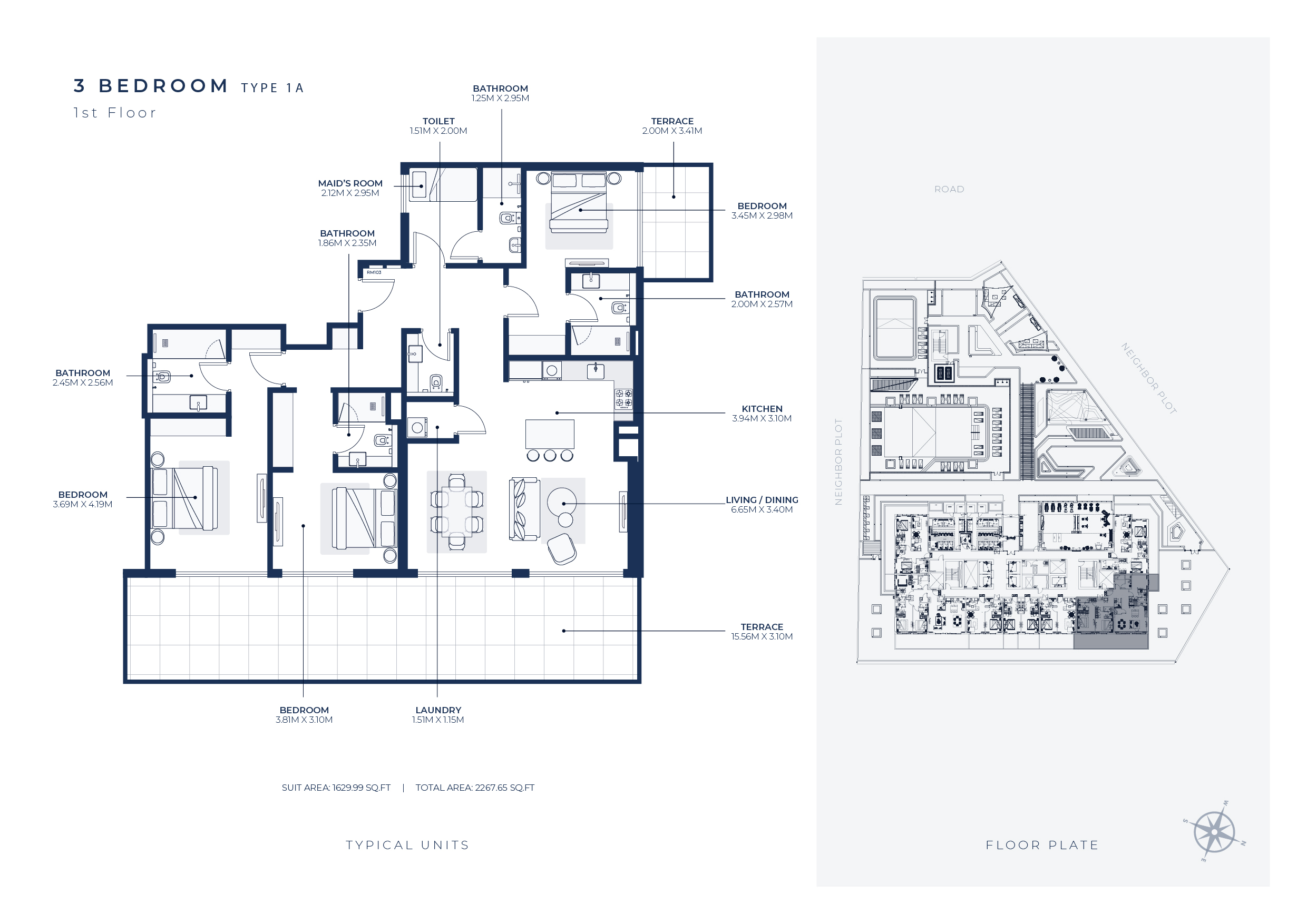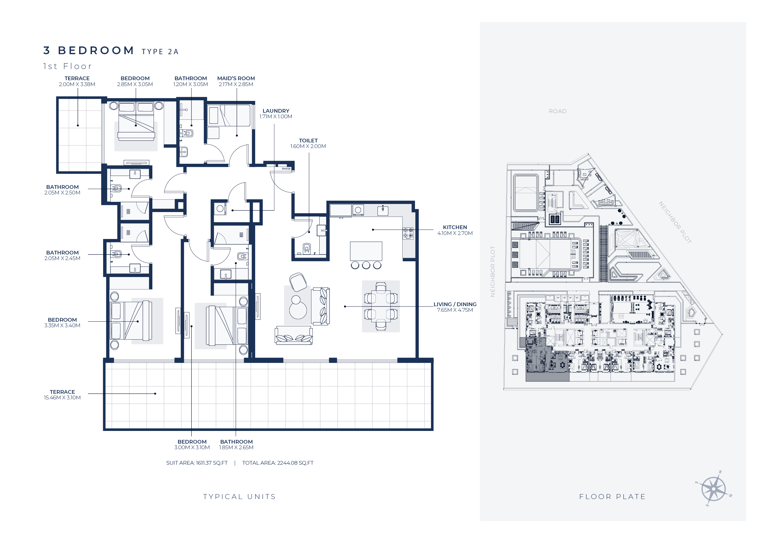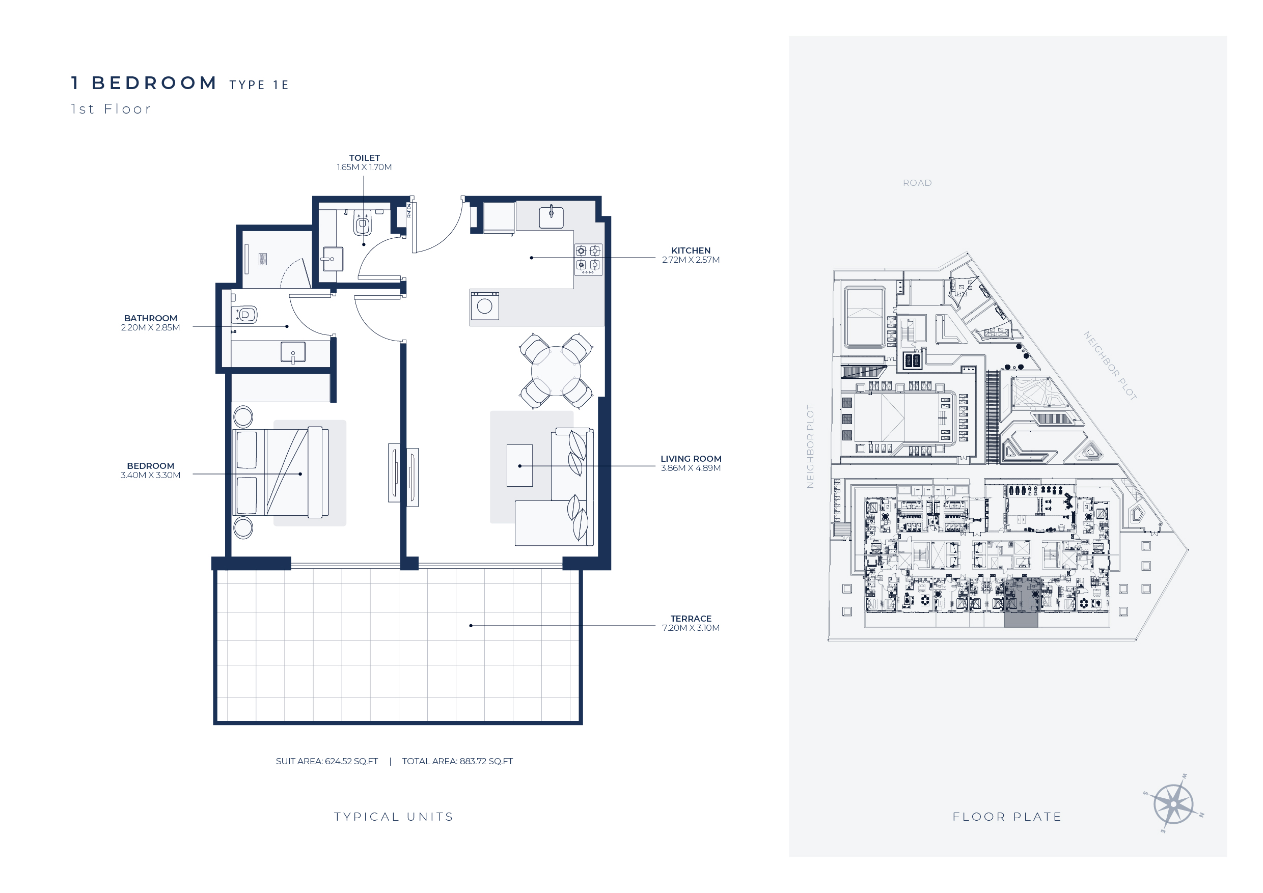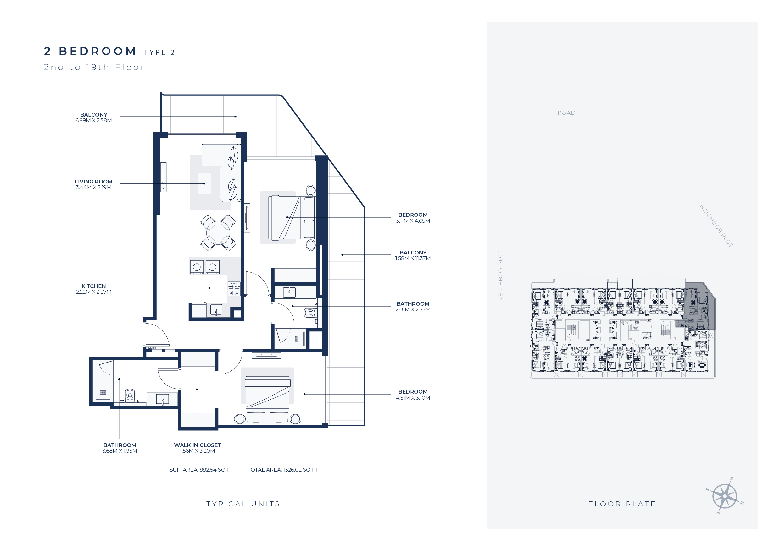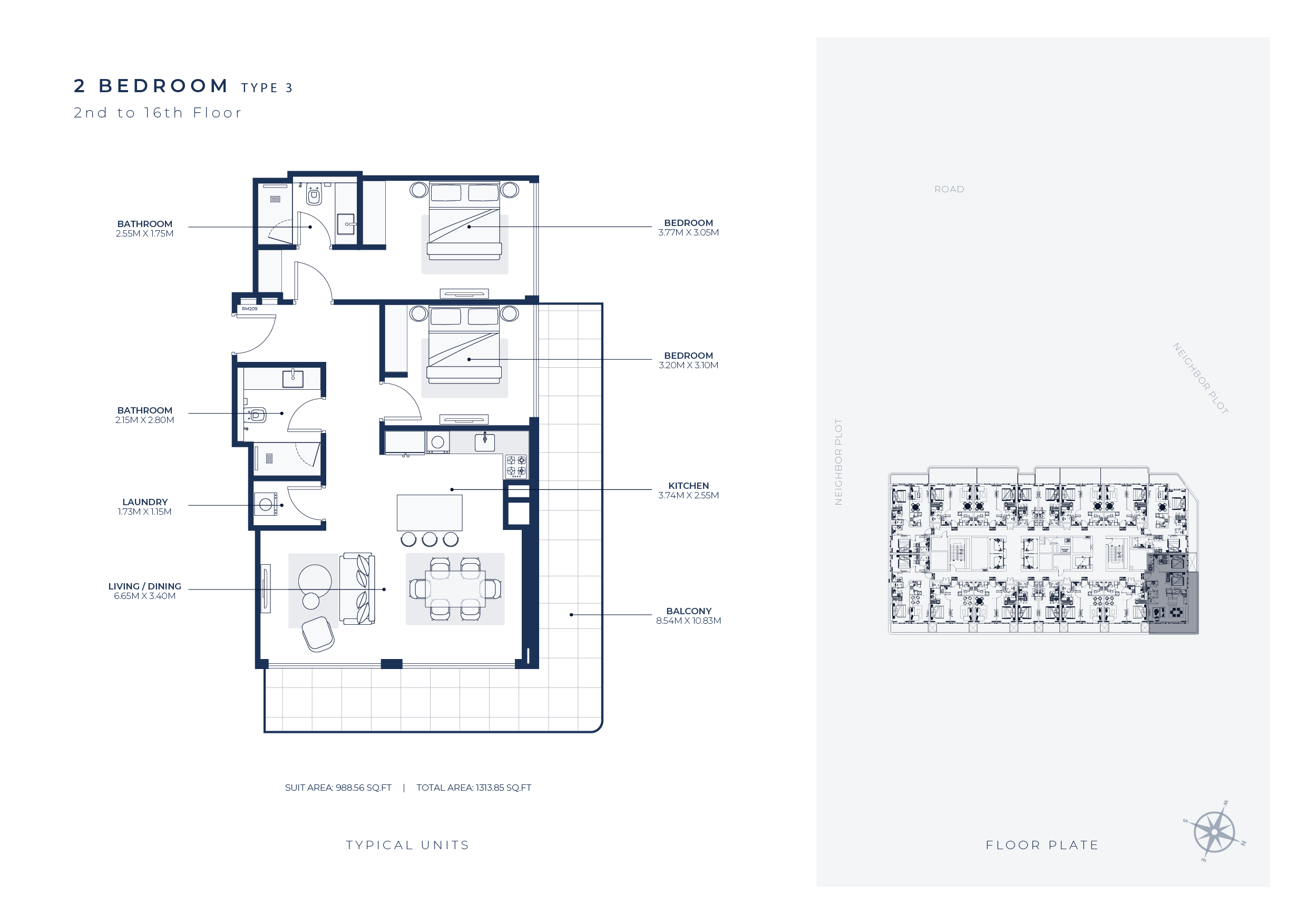 • Sleek Design: Enjoy ultra-modern finishes and contemporary design in your spacious apartment.